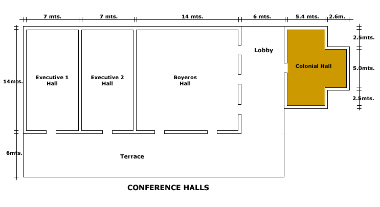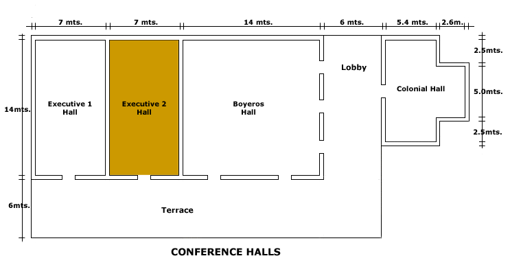 Next, you will find further information about every hall, pictures and plans with measures in meters.